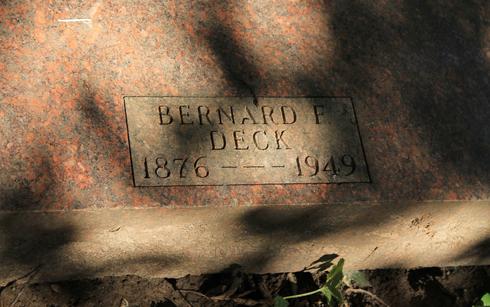 Bernard F. Deck, passed away April 22, suddenly. Member of Pyramid lodge No. 887, A.F. and A.M. of Chicago. Funeral 2 p.m., Monday, at Hickey-Trulley chapel, 159th street and Cicero avenue. Interment Bachelor Grove cemetery.